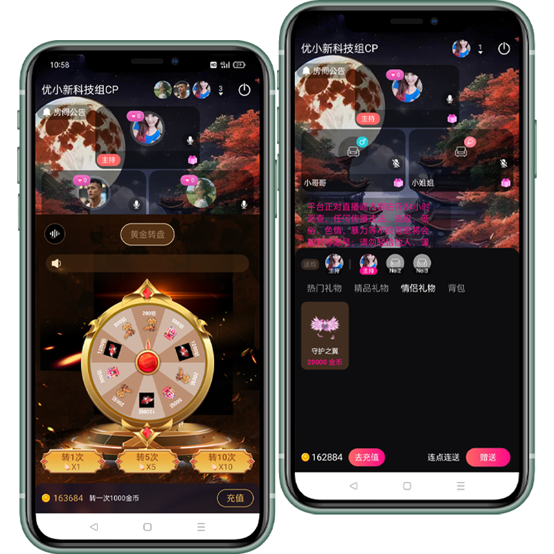 - 找CP,在语音房间,送特定情侣礼物,可组成CP情侣。