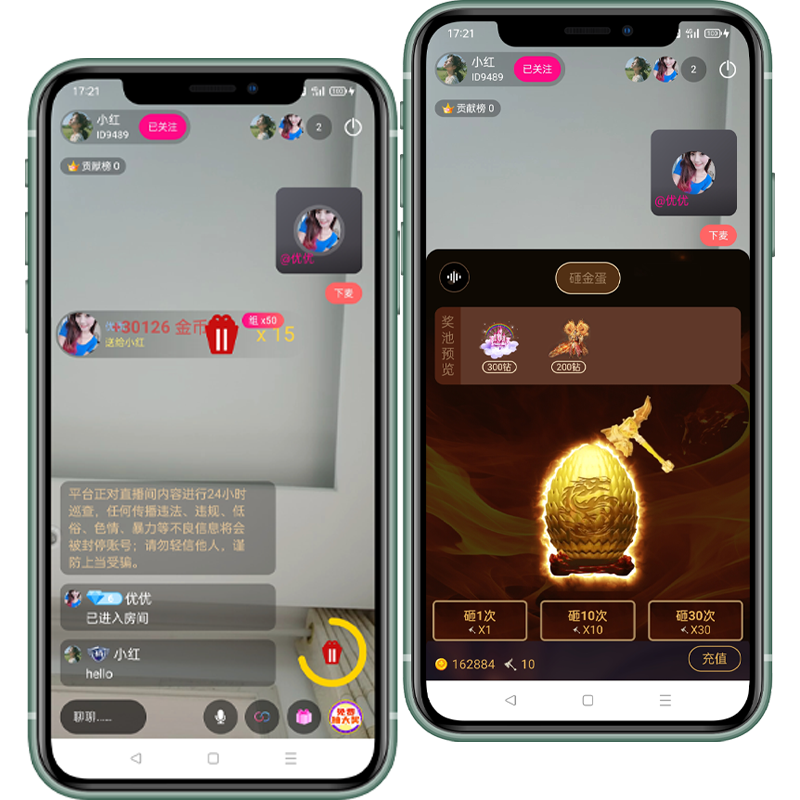 视频直播是当前较为流行的玩法,我们处理直播基本功能,还创新的增加了不同的新玩法。